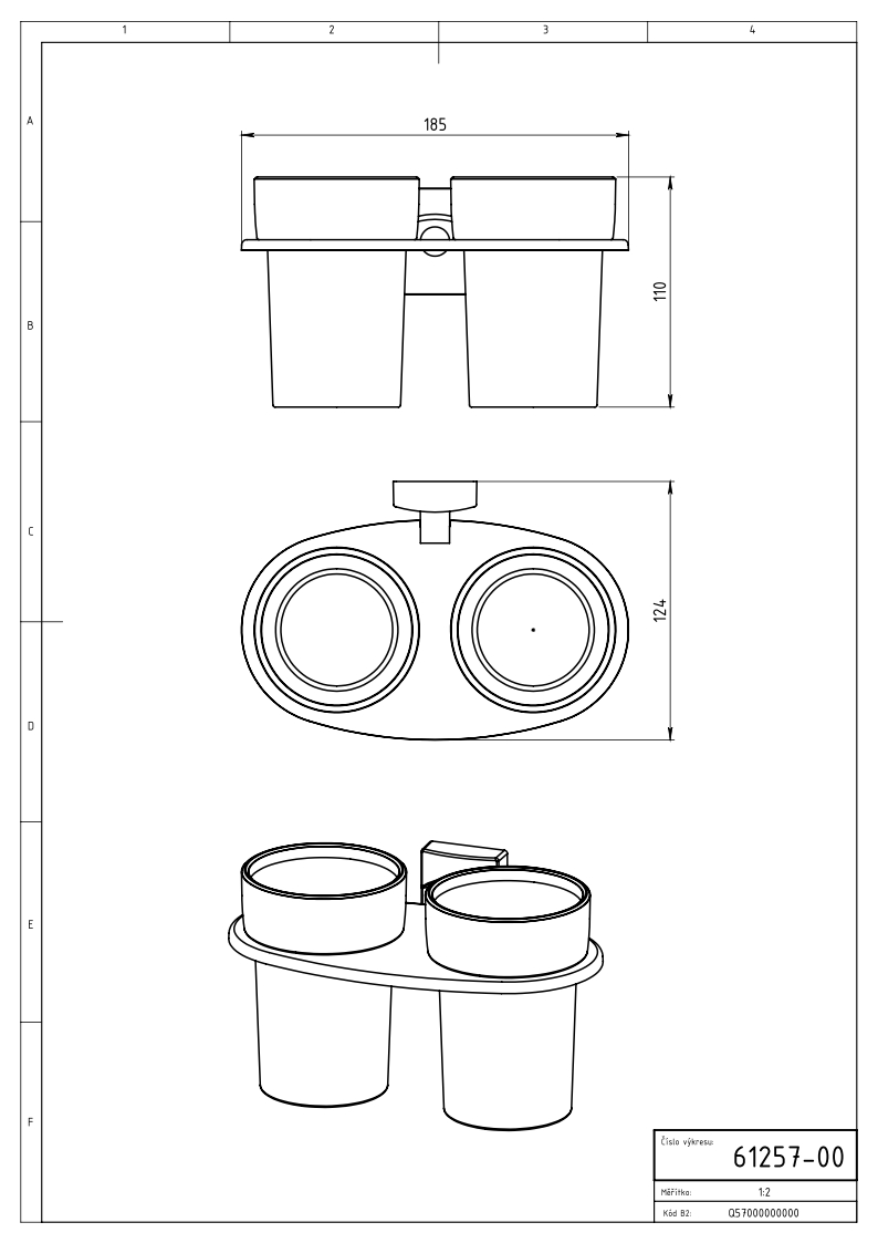 Dvojitý držiak kefiek a pasty -sklo. Montáž lepením alebo vrtaním.