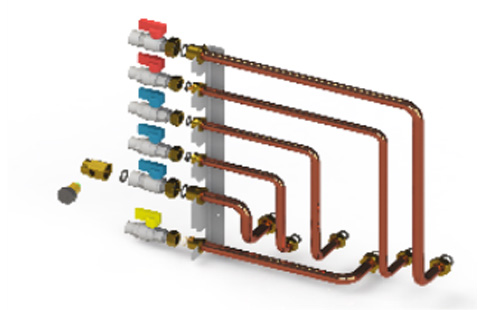Ľavá pripojovacia sada ku kotlu Solid Comfort s guľovými kohútmi a filtrami a s upevňovacou lištou