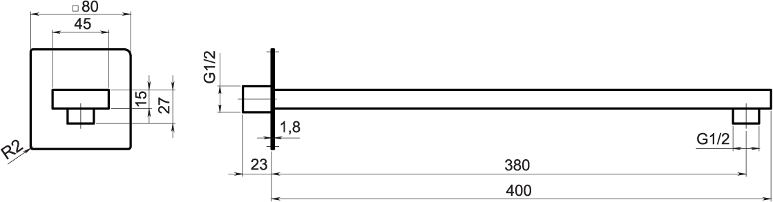 Rameno pevnej sprchy pre podomietkové zapojenie. Dĺžka ramena je 400 mm