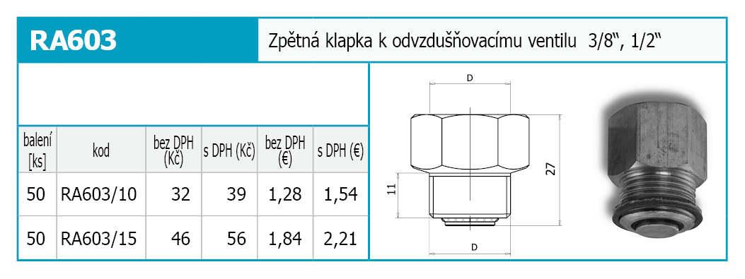 SPÄTNÁ KLAPKA ODVZDUŠŇOVACIEHO VENTILU 1/2"