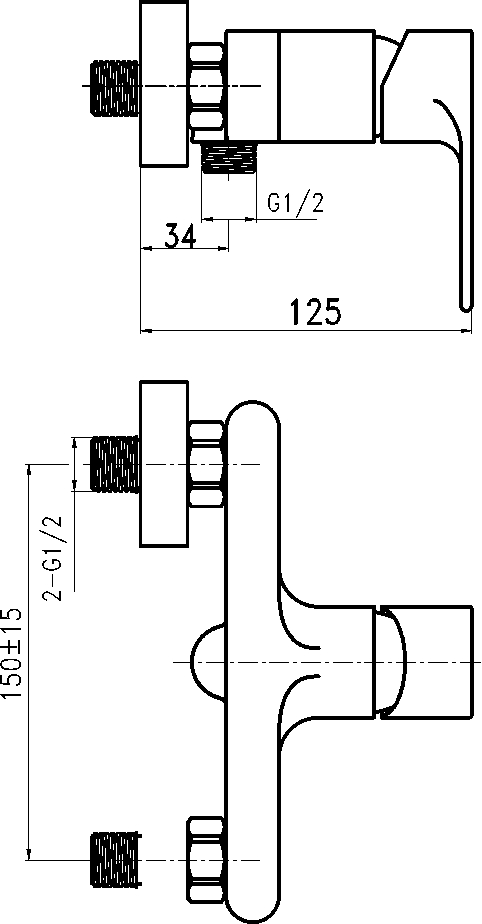 Kvalitná a odolná, keramická kartuš 35 mm s 5 ročnou zárukou. Kvalitné chrómové prevedenie. Sprchová nástenná batéria s rozostupom 150 mm so spodným vývodom vody.