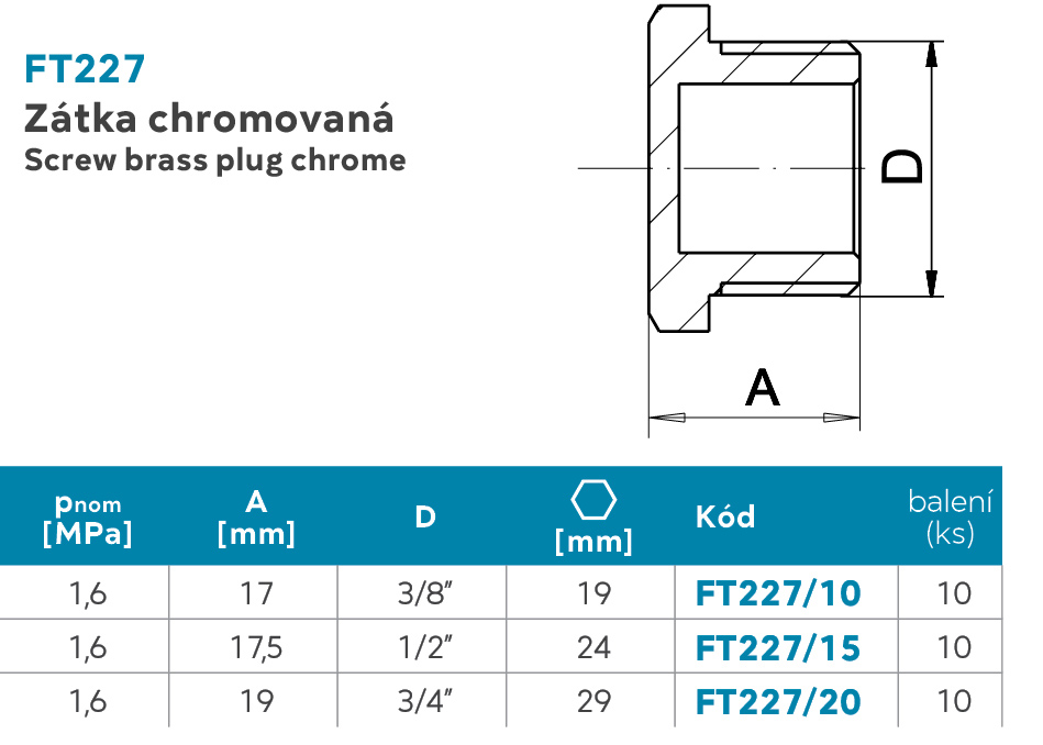 ZÁTKA 3/8" CHRÓM